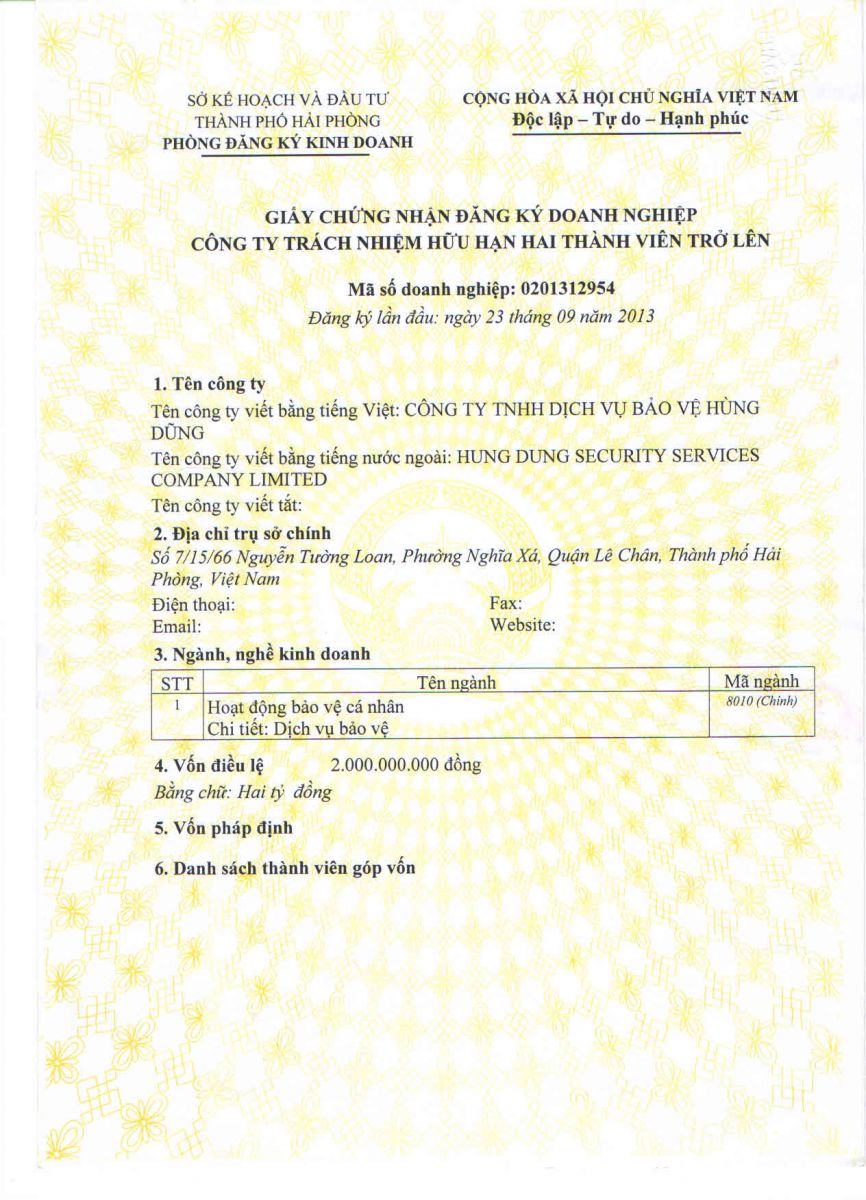Chào mừng đến với Công ty TNHH Dịch Vụ Bảo Vệ Hùng Dũng